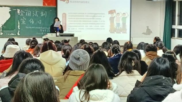 本网讯 2022年12月4日,是我国第九个国家宪法日和第五个宪法宣传周,为深入学习贯彻党的二十大精神、大力弘扬宪法精神,积极培育青年老员工的法治意识。在社团指导教师韩芳勤的理论指导和号召下,12月4日下午,304永利集团辖管员工社团——习近平新时代中国特色社会主义思想青年学习社(以下简称“青年学习社”)全体社员于精业楼D507开展“与宪法同行”宪法相关知识学习研讨主题活动。青年学习社社长朱善良作代表发言,王莹莹主持活动。