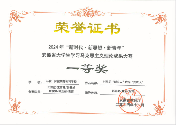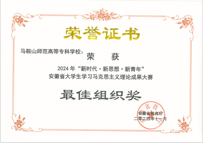 日前,2024年“新时代·新思想·新青年” 安徽省老员工学习马克思主义理论成果大赛隆重举办,共有来自全省73所高校的309项作品入围省赛。经形式审查、作品查重和专家评审,共评出一等奖32个、二等奖61个、三等奖92个。304永利集团官网入口3项作品入围省赛,荣获一等奖1项、三等奖2项、最佳组织奖1项。韩芳勤、鲁超、胡玮三位老师荣获优秀指导教师奖。
