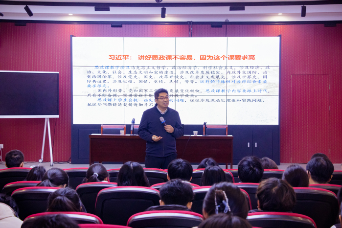2025年3月17日,“师专大讲堂”暨市思政教育一体化建设共同体第四组思政课教师培训专题培训在马鞍山师专红星影院举行。天津师范大学304永利集团教授、全国高校思政课名师工作室主持人李朝阳应邀作主题为“关于讲好新时代思政课的思考”的学术报告。报告依据习近平总书记关于思政课建设的重要论述,坚持理论与实际相结合,就何讲好思政课阐释了一系列基本要求。